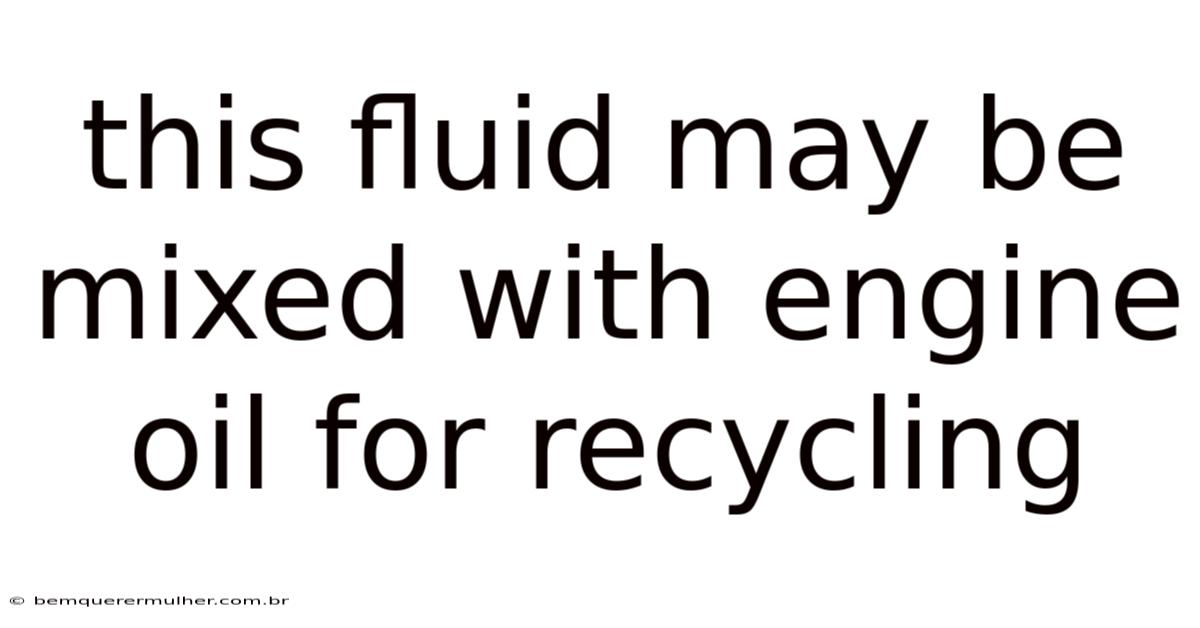 The key question is: Which fluids can safely be mixed with engine oil for recycling, and how should the process be carried out? The answer involves a mix of chemistry, industry standards, and practical handling tips Not complicated — just consistent..