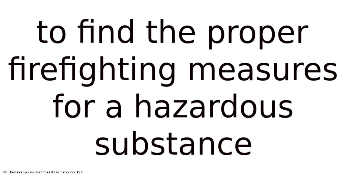 To Find the Proper Firefighting Measures for a Hazardous Substance