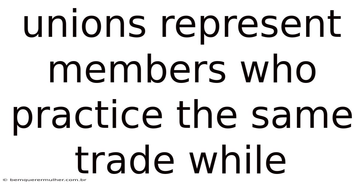 Unions RepresentMembers Who Practice the Same Trade: A Comprehensive Overview