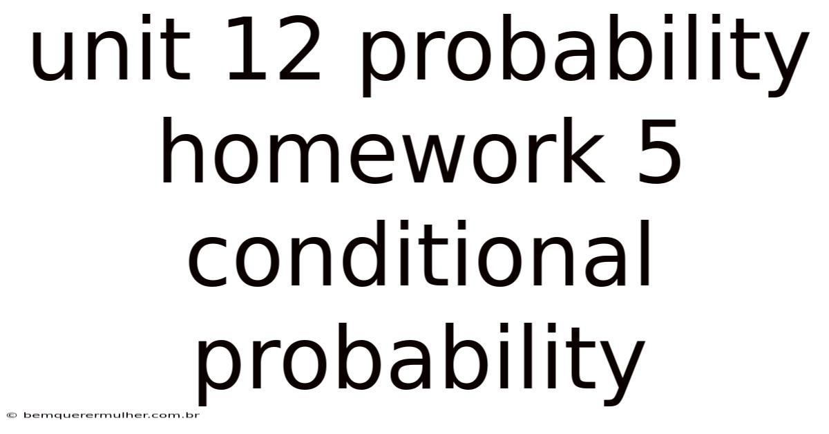 Unit 12 Probability Homework 5: Conditional Probability stands as a cornerstone concept within the realm of statistics and mathematical reasoning, offering readers a powerful tool to analyze relationships between variables and interpret real-world scenarios. For students navigating academic assignments, this topic often emerges as a recurring challenge, demanding careful attention to principles that underpin their understanding. This article looks at the intricacies of conditional probability, providing clear explanations, practical examples, and strategies to apply these concepts effectively to the specific homework tasks outlined in Unit 12. Whether grappling with textbook problems or attempting to solve practical applications, mastering conditional probability not only enhances mathematical proficiency but also equips individuals with the analytical skills necessary for success in both academic and professional contexts. By demystifying the underlying mathematics and illustrating their relevance through relatable scenarios, we aim to empower learners to approach conditional probability with confidence, transforming theoretical knowledge into actionable insight And that's really what it comes down to. Which is the point..