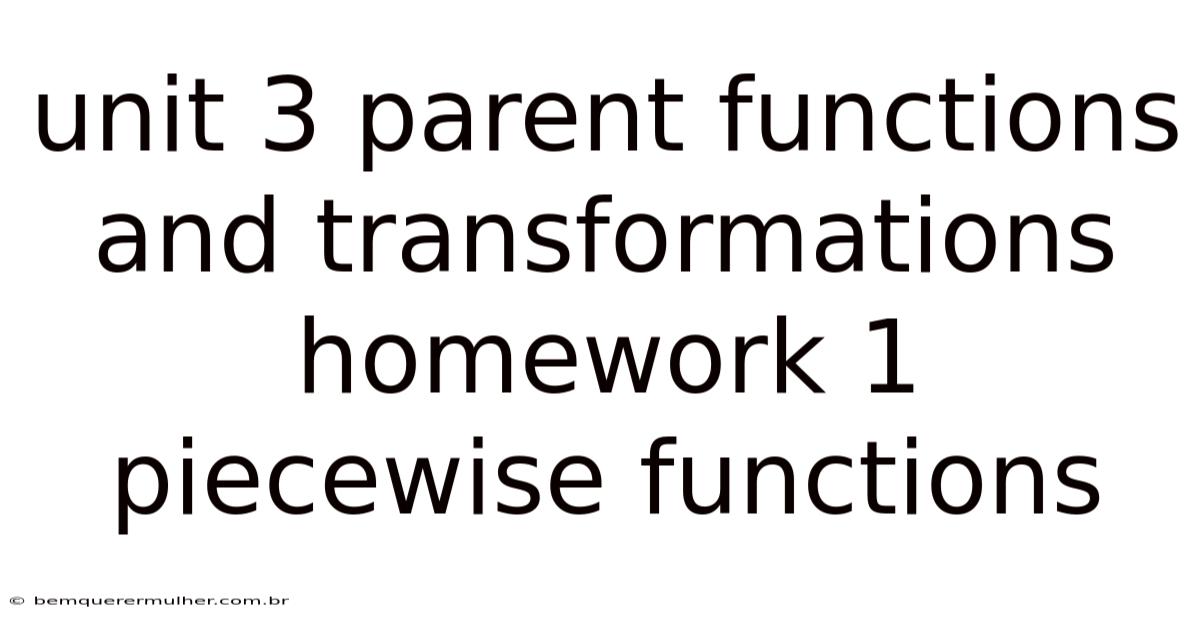 In mathematics, understanding functions and their transformations is a crucial foundation for higher-level topics. Unit 3 Parent Functions and Transformations Homework 1 on Piecewise Functions is a key part of this learning journey. This assignment helps students grasp how functions can be defined in separate parts, each with its own rule, and how these functions can be transformed using shifts, stretches, and reflections But it adds up..