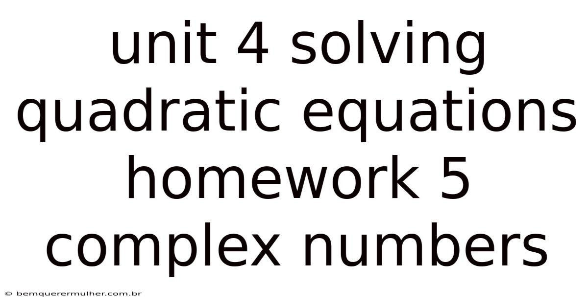 The journey through algebra often follows a predictable path: linear equations, systems of equations, and finally, quadratic equations. This is where Unit 4 Solving Quadratic Equations Homework 5 Complex Numbers becomes essential. But this homework set is designed to introduce the imaginary unit i, expand the number system to include complex numbers, and ensure students can solve any quadratic equation, regardless of its discriminant. Unit 4 typically focuses on the latter, utilizing methods such as factoring, completing the square, and the quadratic formula. When this value is negative, the equation yields no real number solutions. Even so, the discriminant—the value beneath the square root in the quadratic formula—acts as a gatekeeper. The core objective is to move beyond the limitation of the real number system and embrace a more complete mathematical framework.