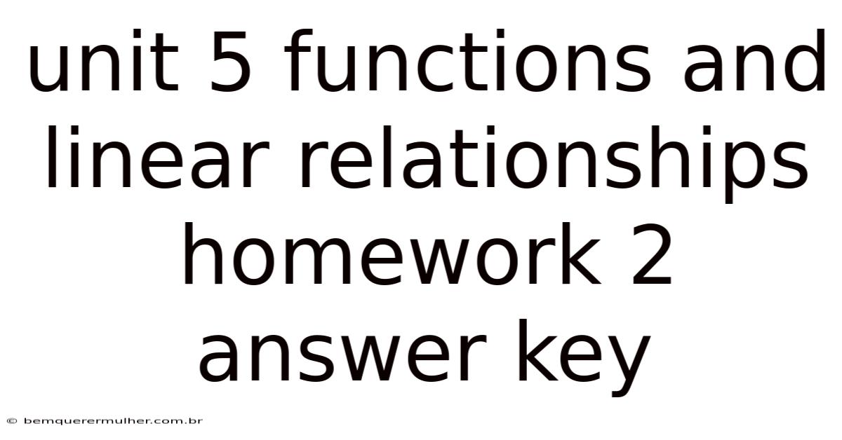 This article provides a comprehensive answer key for Unit 5 Functions and Linear Relationships Homework 2, covering essential concepts in algebra and linear functions. Understanding these concepts is crucial for building a strong foundation in mathematics and preparing for more advanced topics.