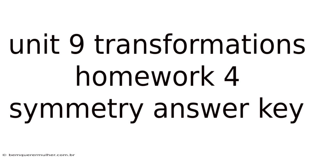 Mastering symmetry in Unit 9 Transformations Homework 4 requires practice, visualization, and a solid grasp of geometric principles. Plus, by following the steps outlined in this article and using the answer key as a reference, students can confidently tackle symmetry problems. On the flip side, remember, symmetry is not just about memorizing answers—it’s about understanding the underlying mathematical relationships that govern shapes and patterns. With consistent practice and curiosity, you’ll develop the skills to excel in geometry and beyond That's the whole idea..