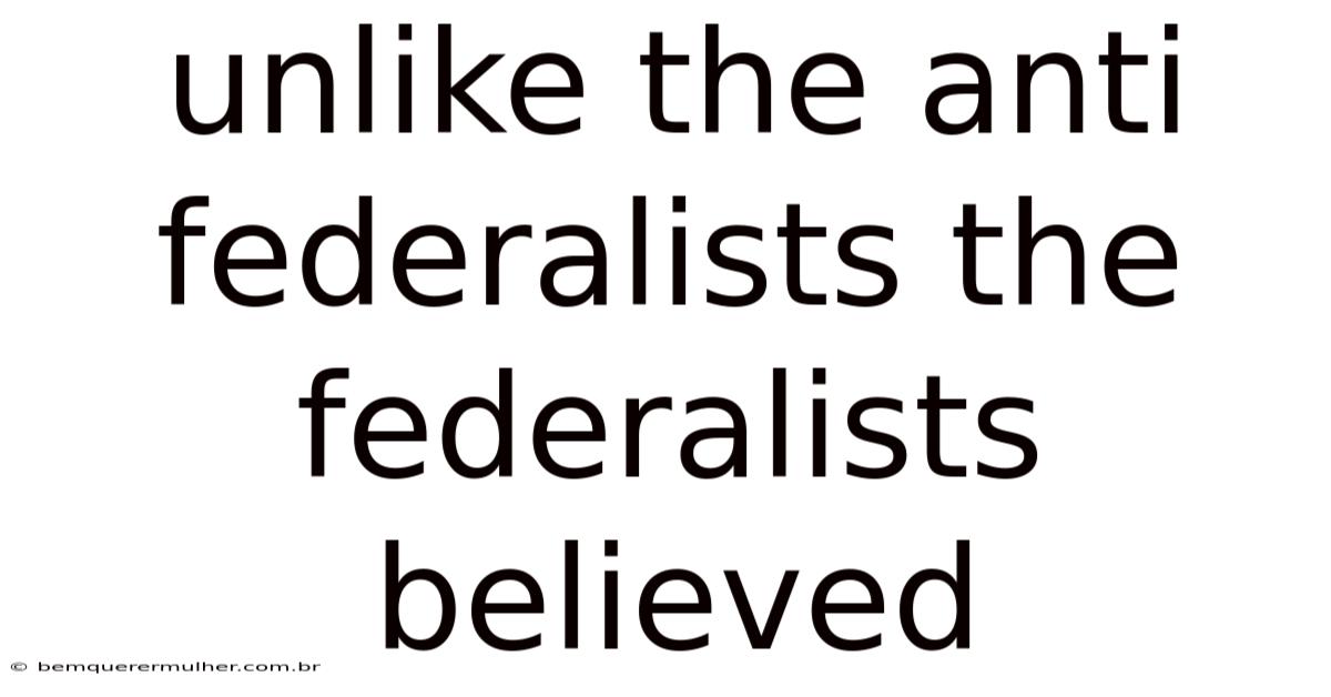 The Federalists Believed in a Strong Central Government to Unify and Stabilize the New Nation