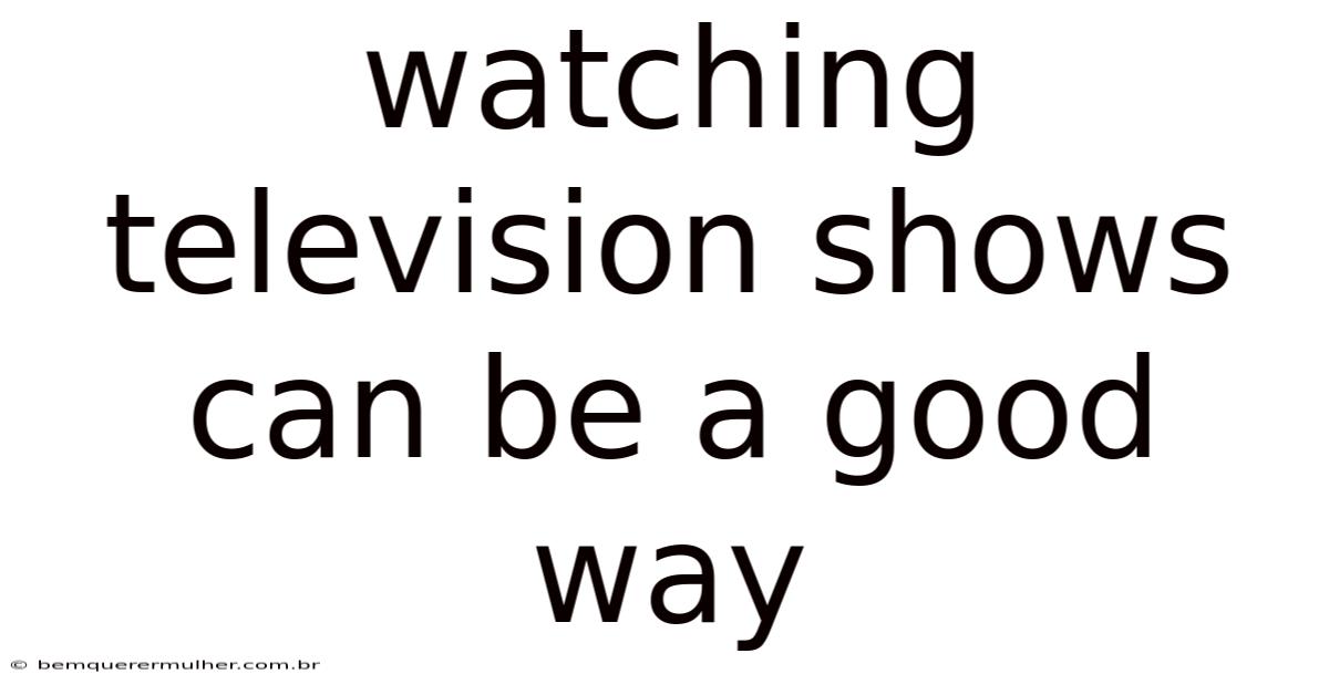 While watching television shows can be a good way to improve life, it depends on how it is used. Without limits, any tool can become harmful.