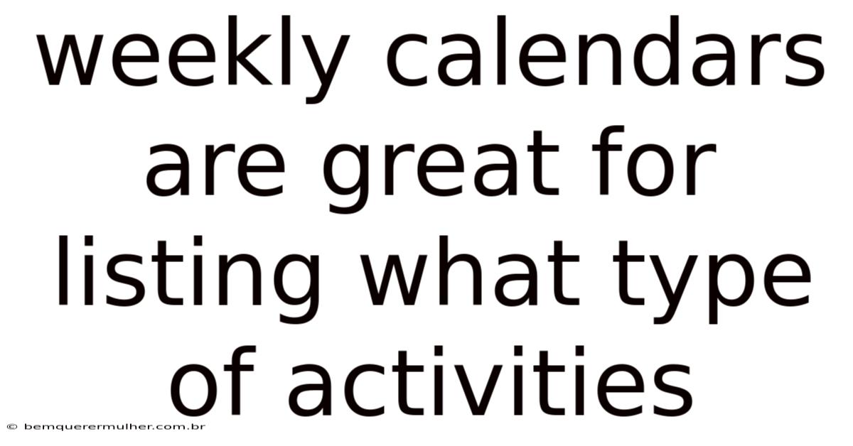 Weekly calendars are great for listing what type of activities because they provide a structured framework to organize daily tasks, prioritize goals, and maintain a balanced lifestyle. By breaking down your week into manageable segments, a weekly calendar helps you visualize your commitments, allocate time effectively, and avoid the chaos of last-minute planning. This tool is not just about scheduling meetings or appointments; it’s about creating a roadmap for your time, ensuring that every activity—whether personal, professional, or recreational—is accounted for. The act of listing activities in a weekly calendar fosters clarity, reduces stress, and empowers individuals to take control of their time, making it an essential habit for productivity and well-being Simple, but easy to overlook..