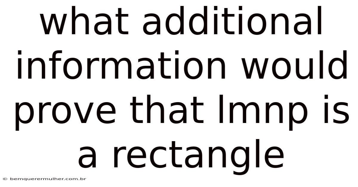 To prove that a quadrilateral is a rectangle, we need to examine its properties and identify the key characteristics that distinguish it from other shapes. A rectangle is a special type of parallelogram with unique attributes that set it apart. Let's explore the additional information that would conclusively prove that a given quadrilateral, in this case, LMN P, is indeed a rectangle And it works..