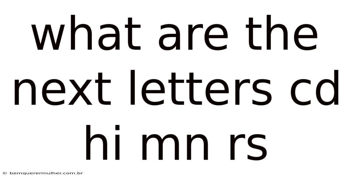 The short version: the sequence "cd hi mn rs" follows a pattern of taking every fourth letter in the alphabet, starting from 'c', and grouping them in pairs of consecutive letters. The next letters in the sequence are "tu", as they are the next consecutive letters after 'r' and 's' in the alphabet.