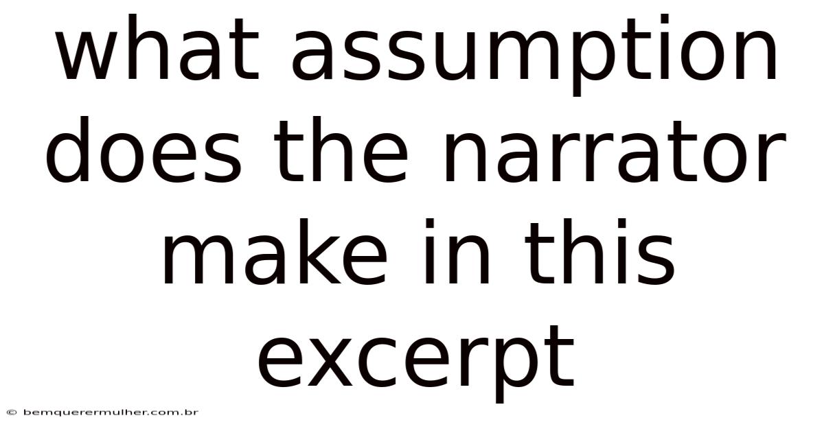 What Assumption Does the Narrator Make in This Excerpt serves as a critical lens for examining the reliability of a narrative voice. When analyzing any piece of literature, whether it is a novel, a short story, or a poem, the narrator is the conduit through which the reader experiences the story. Even so, the narrator is not always a neutral observer; they are often a character with biases, limitations, and unspoken beliefs. To truly understand the text, one must dissect the underlying assumptions that govern the narrator's perspective. This involves looking beyond the surface of the plot and interrogating the mental framework from which the story is told.