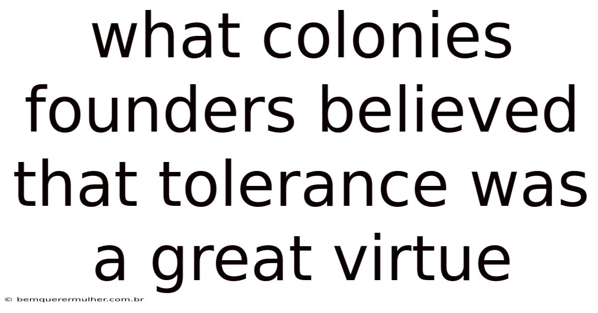 What Colonies Founders Believed That Tolerance Was a Great Virtue