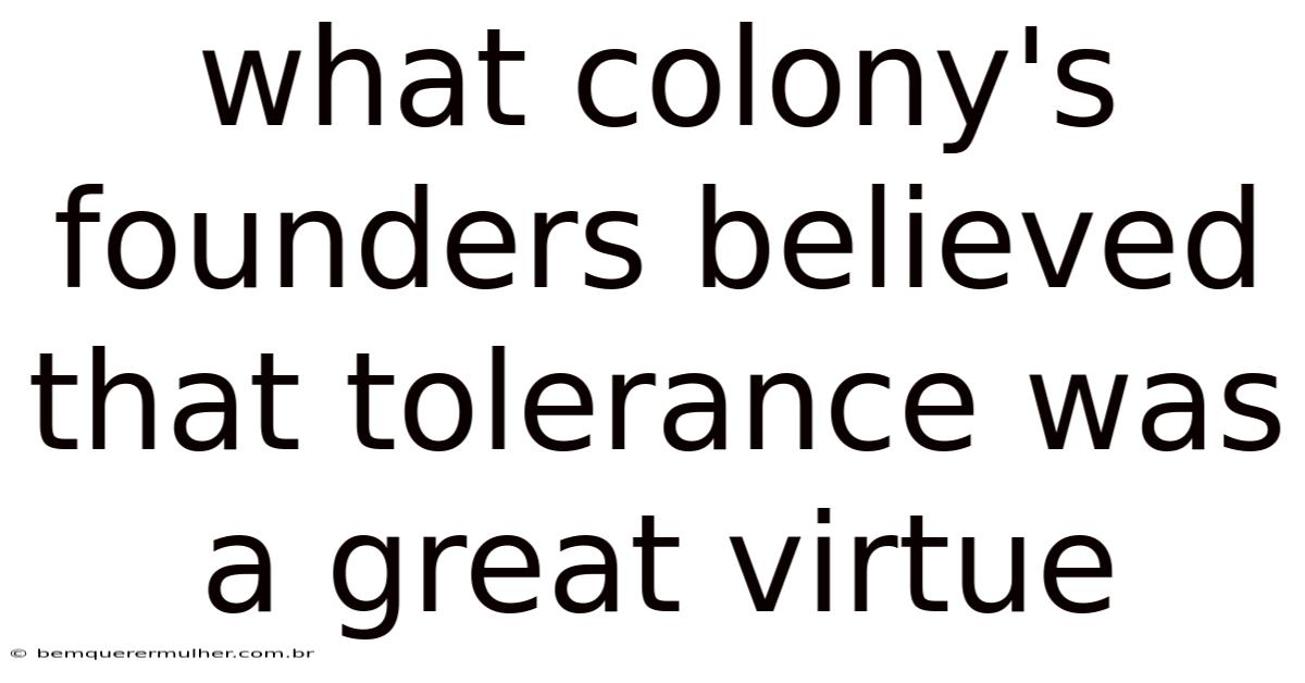 What Colony's Founders Believed That Tolerance Was A Great Virtue