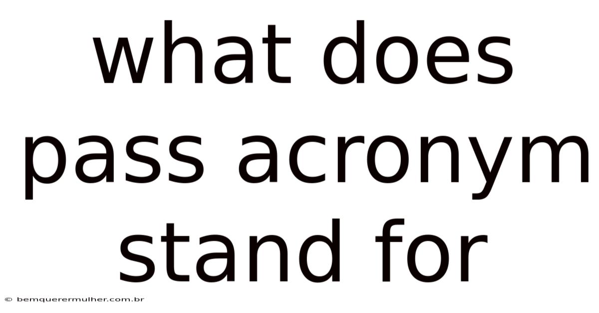 The acronym PASS holds significance across multiple fields, each with its own specialized meaning and application. From emergency response systems to educational frameworks and technological tools, PASS serves as a critical shorthand for processes designed to ensure safety, efficiency, and accountability. So understanding the context in which PASS is used is essential to grasping its purpose and impact. This article explores the diverse interpretations of the PASS acronym, shedding light on its role in different industries and everyday scenarios Easy to understand, harder to ignore..