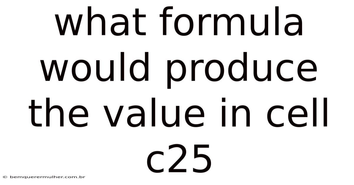 Understanding what formula would produce the value in cell C25 is essential for anyone working with spreadsheets, financial models, or data analysis. Think about it: when you know how a target cell is calculated, you can replicate results, audit errors, and build scalable templates. On the flip side, this question goes beyond simple arithmetic and touches on logic, structure, and planning within worksheet design. In this guide, we explore how to determine, construct, and validate the formula behind cell C25 using practical steps, real examples, and clear reasoning.