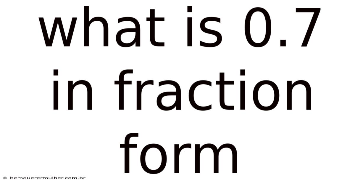 Understanding how to convert decimals into fractions is a fundamental math skill that opens the door to more advanced problem-solving. Whether you are a student tackling homework, a parent helping with math practice, or simply someone looking to refresh their numerical literacy, mastering this conversion will strengthen your confidence in working with rational numbers. The decimal 0.If you have ever wondered what is 0.7 translates directly to the fraction 7/10, a straightforward conversion that relies on understanding place value and basic number properties. 7 in fraction form, the answer is simpler than it might first appear. In this guide, we will walk through the exact steps, explore the mathematical reasoning behind the process, and address common questions so you can apply this knowledge effortlessly in everyday calculations And that's really what it comes down to..