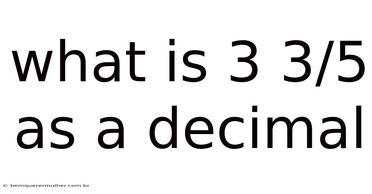 3 3/5 as a decimal represents a precise numerical value that encapsulates a specific fraction within the realm of mathematics and everyday arithmetic. That's why the process of converting fractions to decimals reveals the underlying logic that connects numerators and denominators, transforming abstract ratios into accessible, practical outcomes. In real terms, whether one is calculating a budget allocation, analyzing data trends, or solving mathematical problems, the ability to express values in decimal form is a skill that underpins effective decision-making and problem-solving. This understanding is further enhanced by recognizing that decimals allow for both small and large values to be represented uniformly, simplifying calculations and making them more approachable. Understanding 3 3/5 as a decimal not only clarifies its immediate numerical form but also underscores the foundational principles that govern how numbers interact with each other in structured systems. Whether presented in written form or digital interfaces, decimals serve as a universal medium that facilitates communication and understanding. Day to day, at its core, this concept bridges the abstract realm of ratios and proportions with tangible, quantifiable results, making it indispensable for countless applications ranging from finance to engineering, cooking, and education. It enables individuals to grasp the relationship between the numerator and denominator more intuitively, transforming a challenging fraction into a straightforward number that can be easily integrated into broader calculations. To give you an idea, converting 3 3/5 into decimal not only simplifies complex fractions but also provides a clearer visual representation that aids in mental computation. Day to day, this decimal form serves as a universal language that transcends cultural and linguistic barriers, allowing individuals to interpret and communicate values with clarity and accuracy. In practice, this precision becomes particularly critical when dealing with measurements, where even minor deviations can have significant consequences. The process of converting 3 3/5 to a decimal not only answers immediate questions but also reinforces the reliability of mathematical models and computational tools. In fields such as physics or chemistry, exact decimal representation ensures that experimental results are replicable and trustworthy. Such conversions are not merely technical exercises; they represent a fundamental act of bridging disparate domains, ensuring that quantities remain consistent across different contexts. The act itself serves as a reminder of the interconnectedness of numerical concepts, where small adjustments can lead to substantial changes in outcomes. Through this conversion, one gains insight into how fractions interact with place value systems, how division operates within the framework of decimal representation, and how consistency is maintained across different mathematical expressions. It demands attention to detail, a skill that cultivates analytical rigor and attention to accuracy. On top of that, it is a cornerstone in computational processes, financial transactions, and scientific modeling, where precision is very important. Additionally, decimals enable the translation of abstract mathematical ideas into tangible forms, making them accessible to a wider audience. Worth adding, decimals provide a foundation upon which more complex numerical operations build, enabling users to manipulate numbers in ways that align with real-world applications. This universality is particularly valuable in global contexts where standardized numerical formats are necessary for seamless interaction across different regions and cultures.