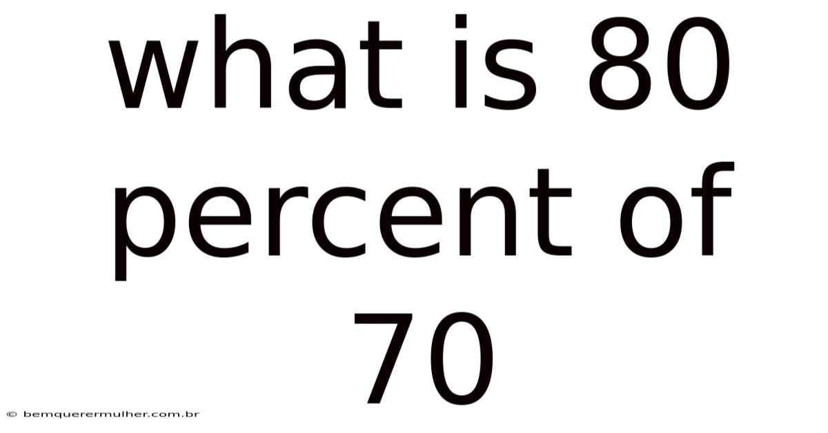 80 percent of 70 is 56. This means that if you take 70 items and take 80% of them, you are left with 56 items. Alternatively, you can think of it as finding 80% of 70, which is the same as finding 4/5ths of 70 (since 80% = 80/100 = 4/5), and 4/5 * 70 = 56.