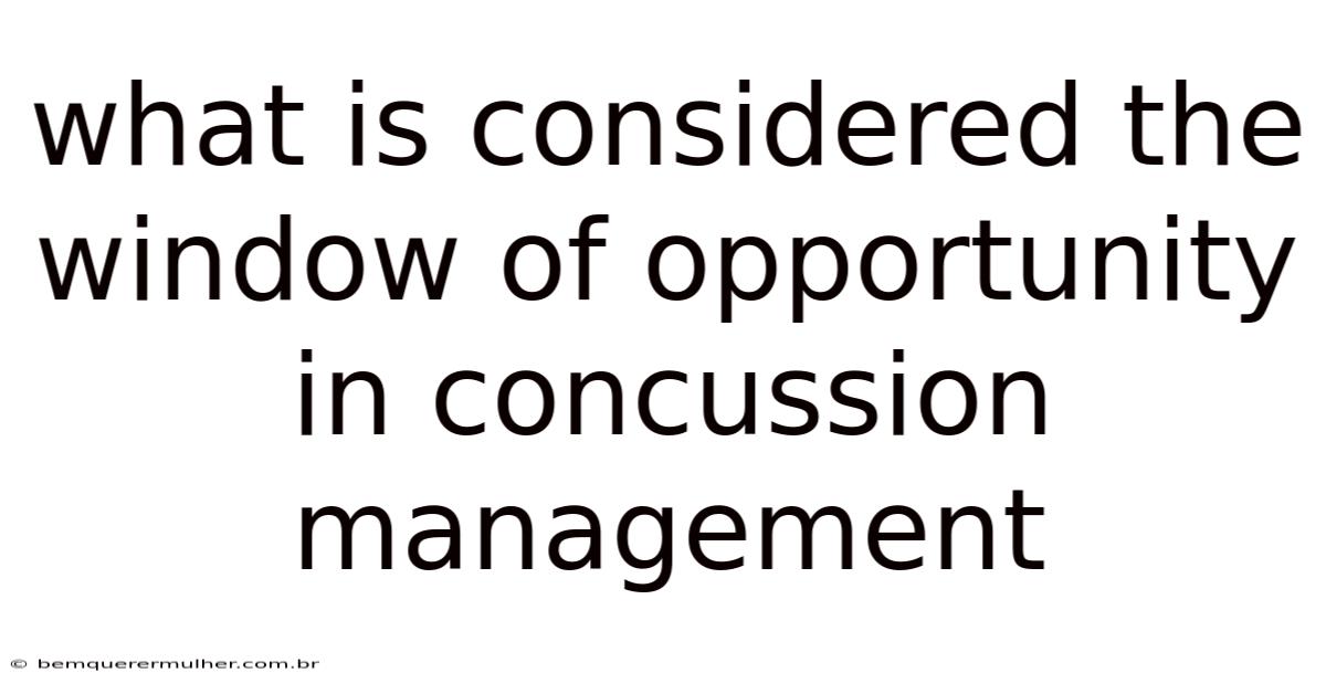What is Considered the Window of Opportunity in Concussion Management?