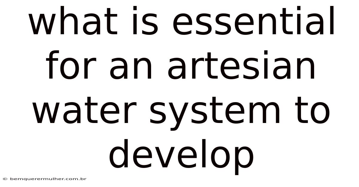 An artesian water system is a natural groundwater source that flows to the surface under its own pressure, providing clean, reliable water without the need for pumping. Here's the thing — understanding what is essential for an artesian water system to develop helps engineers, landowners, and environmental planners create sustainable water supplies while protecting aquifer health. This article explores the geological, hydrological, and human‑controlled factors that enable artesian conditions, explains the science behind pressure‑driven flow, outlines the steps to assess site suitability, and answers common questions about maintenance and environmental impact.