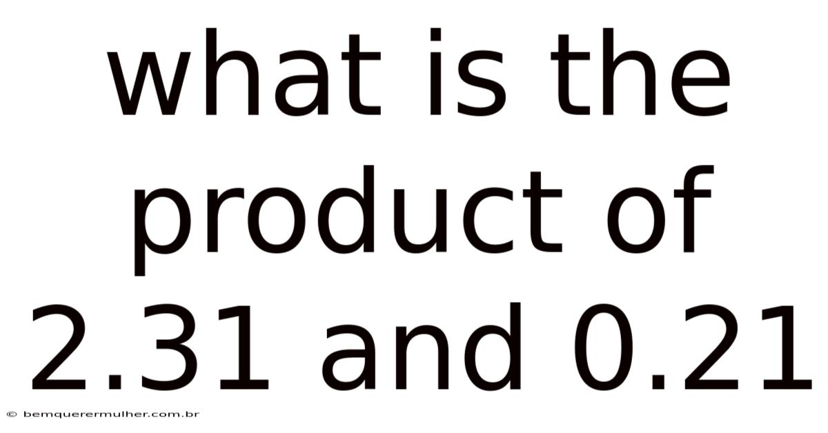What is the product of 2.31 and 0.21? The exact product is 0.4851. This is calculated by multiplying the numbers as whole integers and adjusting the decimal point four places to the left.