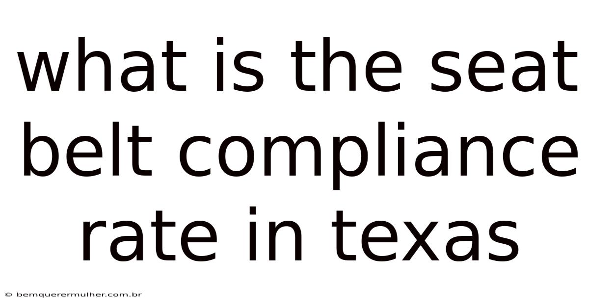 - What is the current seat belt compliance rate in Texas? As of the most recent comprehensive data (typically compiled in annual reports), Texas's observed seat belt compliance rate for front-seat occupants is approximately 93%. This represents a significant improvement over decades past but still indicates room for further improvement.