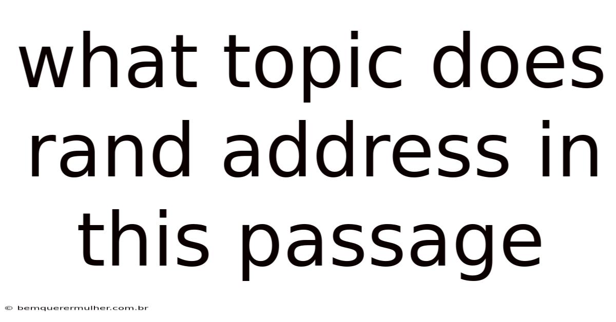 What topic does Randaddress in this passage is a question that requires a careful analysis of the specific text being referenced. That said, since the passage itself is not provided in the query, it is impossible to determine the exact topic Ayn Rand (or any other author named Rand) is addressing. Ayn Rand, the philosopher and novelist, is most famously associated with her philosophy of objectivism, which emphasizes rational self-interest, individualism, and the rejection of altruism. If the passage in question is from one of her works—such as The Fountainhead, Atlas Shrugged, or her non-fiction writings—then the topic she addresses would likely revolve around these core principles.