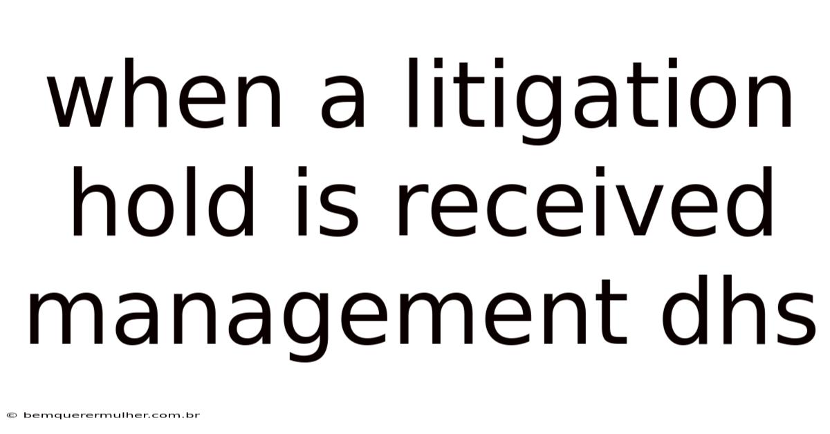 When a litigation hold is received management dhs must respond swiftly and comprehensively to ensure legal compliance and data preservation. Litigation holds, also known as legal holds or preservation notices, are critical directives requiring organizations to suspend routine destruction of potentially relevant documents and information during legal proceedings. For the Department of Homeland Security (DHS), which handles sensitive national security matters, immigration cases, and law enforcement operations, receiving such a notice demands immediate attention to avoid severe legal consequences including spoliation sanctions, adverse inferences, or even contempt of court. DHS management must treat every litigation hold as urgent, activating protocols to identify custodians, preserve data across multiple systems, and document the entire process meticulously. Failure to implement an effective litigation hold can compromise DHS's ability to defend against litigation, protect national security interests, or fulfill its mission-critical functions That alone is useful..