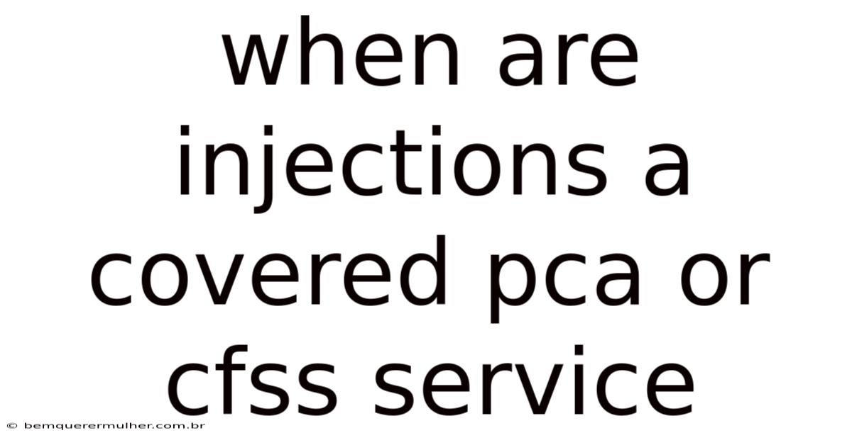 When are injections a covered PCA or CFSS service? Personal Care Assistants (PCA) and Community Function and Support Services (CFSS) are critical components of long-term care, but their scope of services can vary. That said, this question often arises for individuals relying on home healthcare or community support services to manage medical conditions. Understanding when injections fall under these categories requires clarity on the definitions of PCA and CFSS, the nature of injections, and the criteria that determine coverage. This article explores the conditions under which injections are considered covered services under PCA or CFSS, highlighting key factors and examples to guide patients and caregivers Small thing, real impact..