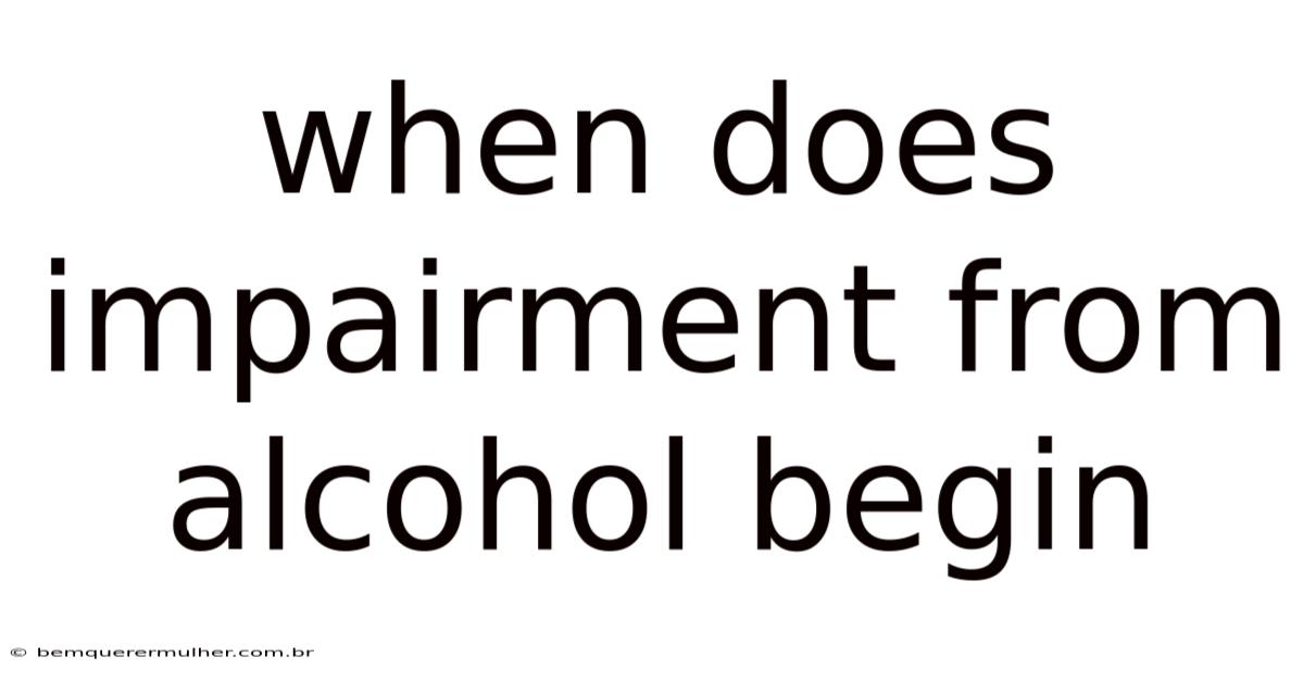The question of when impairment from alcohol begins is a critical one, especially in contexts like driving, socializing, or even daily decision-making. Alcohol impairment refers to the temporary decline in physical, cognitive, and emotional functions caused by the consumption of alcoholic beverages. Understanding when this impairment starts is essential for making informed choices about alcohol use. Even so, while many people associate impairment with being "drunk," the reality is that even small amounts of alcohol can begin to affect the body and mind. This article explores the timeline of alcohol impairment, the factors that influence it, and the signs to look out for Took long enough..