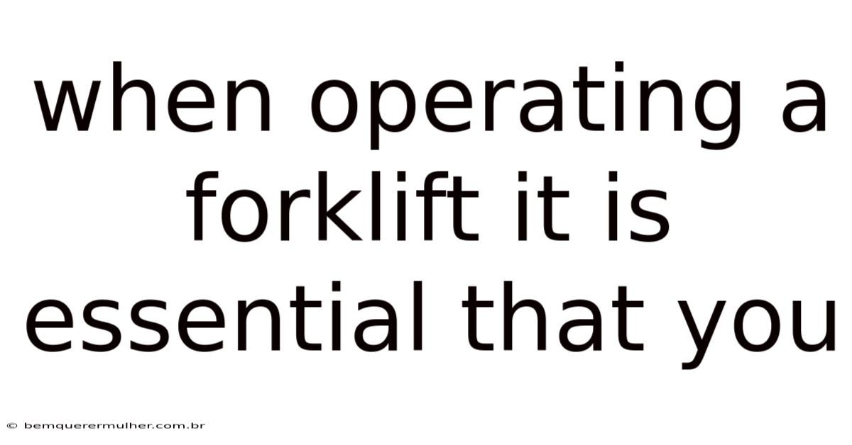 When operating a forklift it is essential that you prioritize safety above all else. The phrase "when operating a forklift it is essential that you" underscores the importance of vigilance, knowledge, and responsibility in every moment of operation. Worth adding: forklifts are powerful machines designed to move heavy loads efficiently, but their operation carries inherent risks if not handled with care. Whether you are a seasoned operator or a novice, understanding and adhering to critical safety practices is non-negotiable. This article will explore the key principles that must be followed to ensure safe and effective forklift use, emphasizing how these practices protect both the operator and others in the workplace.