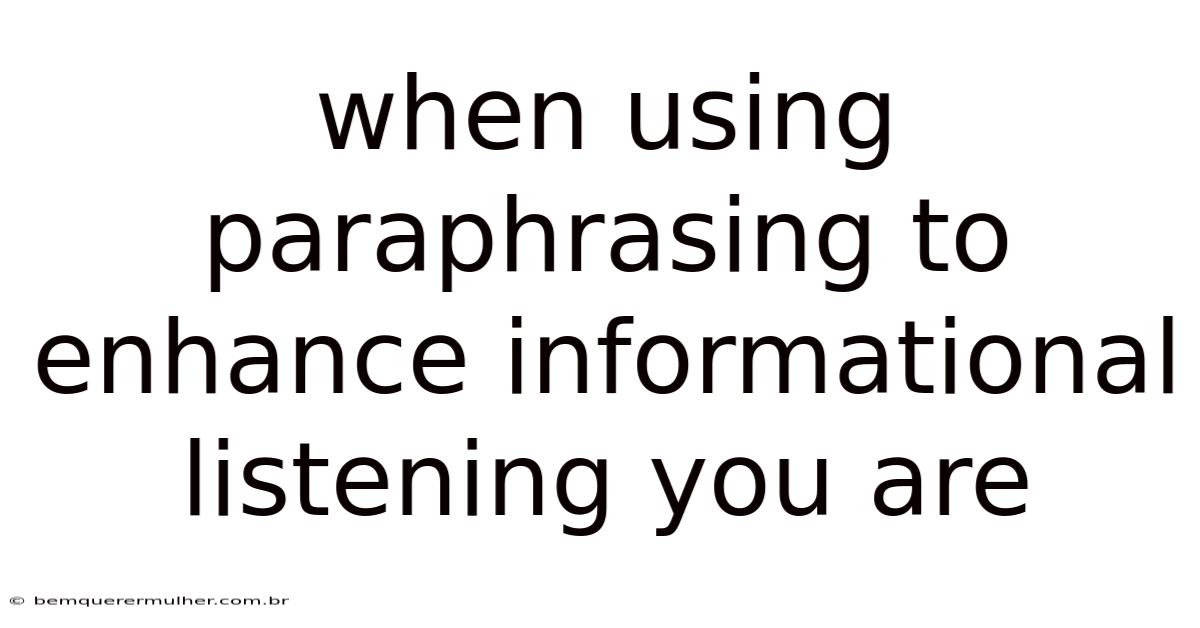 When using paraphrasing to enhance informational listening you are actively re‑encoding the speaker’s message in your own words, a process that solidifies comprehension, checks accuracy, and boosts retention. Informational listening—listening for facts, procedures, or concepts rather than emotional nuance—requires more than passive hearing; it demands that the listener continuously monitor, interpret, and organize incoming data. Paraphrasing serves as a cognitive bridge, turning raw auditory input into meaningful, personally relevant knowledge. This article explores why paraphrasing works, how to apply it step‑by‑step, the underlying neuroscience, common pitfalls, and practical tips for students, professionals, and anyone who wants to become a more effective listener.