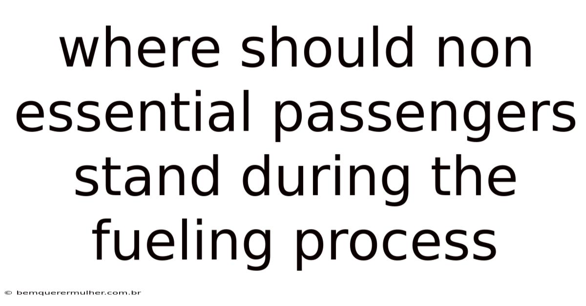 Where should non essential passengers stand during the fueling process determines not only personal safety but also the overall integrity of the aviation or marine operation. Fueling is a high-energy activity that involves flammable substances, static electricity, and strict procedural discipline. When non essential passengers occupy the wrong locations, they become potential hazards to themselves, the crew, and the equipment. Understanding the correct positioning, the reasoning behind it, and the consequences of negligence is vital for anyone involved in or observing these operations Turns out it matters..
