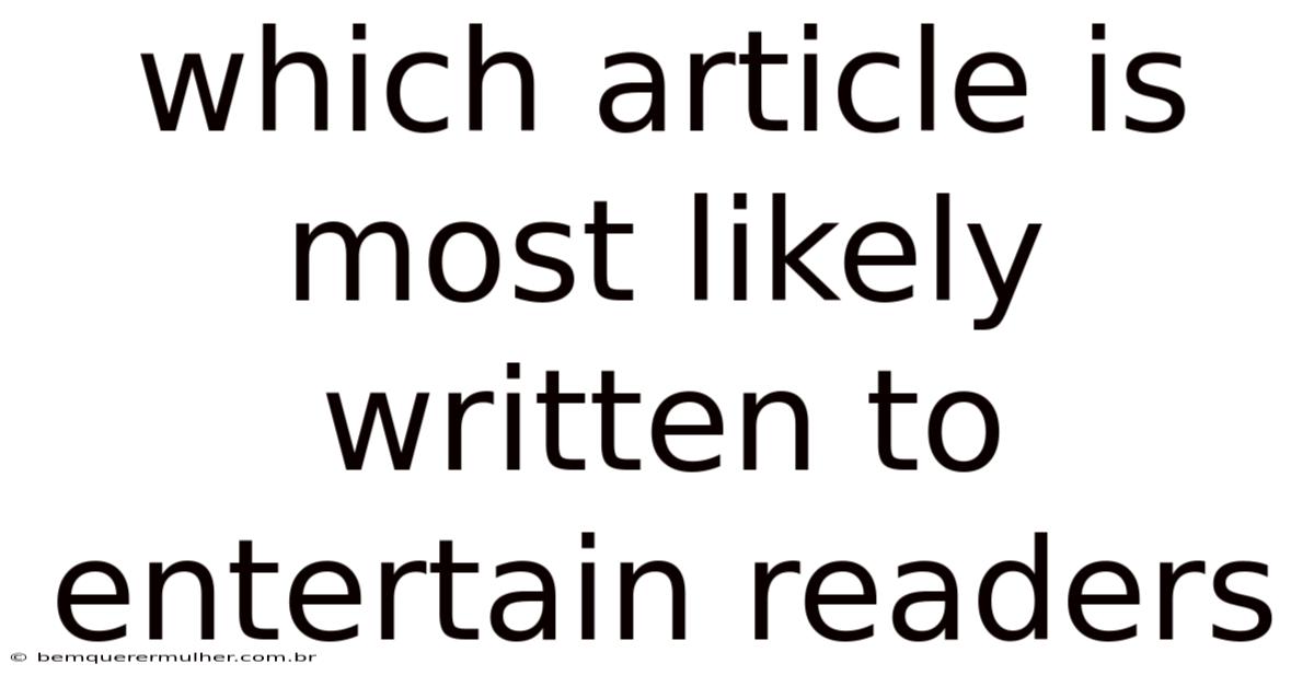 Understanding which article is most likely written to entertain readers therefore isn’t just an academic exercise; it’s a strategic advantage for any content creator aiming for impact That alone is useful..