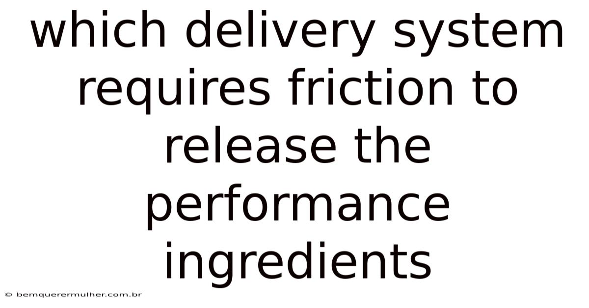 | Delivery System | Typical Use | Mechanism of Friction | Key Performance Ingredient |