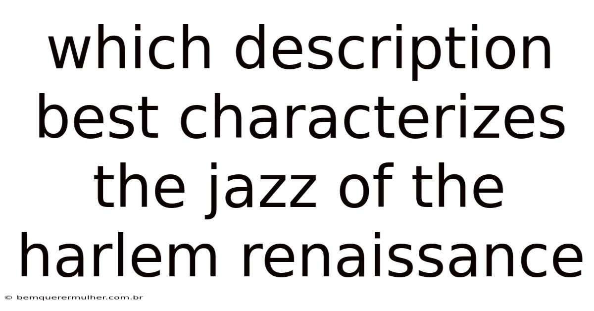 When asked which description best characterizes the jazz of the Harlem Renaissance, the answer lies in recognizing a transformative era where rhythm, harmony, and cultural identity converged to produce a sound that was simultaneously revolutionary and deeply rooted in tradition. But the music’s technical innovations, its embodiment of communal dialogue, and its lasting influence on modern genres together paint a portrait that is as rich as the streets of Harlem itself. By appreciating these layers, readers gain not only a factual understanding but also an emotional connection to a critical chapter in American cultural history And that's really what it comes down to..