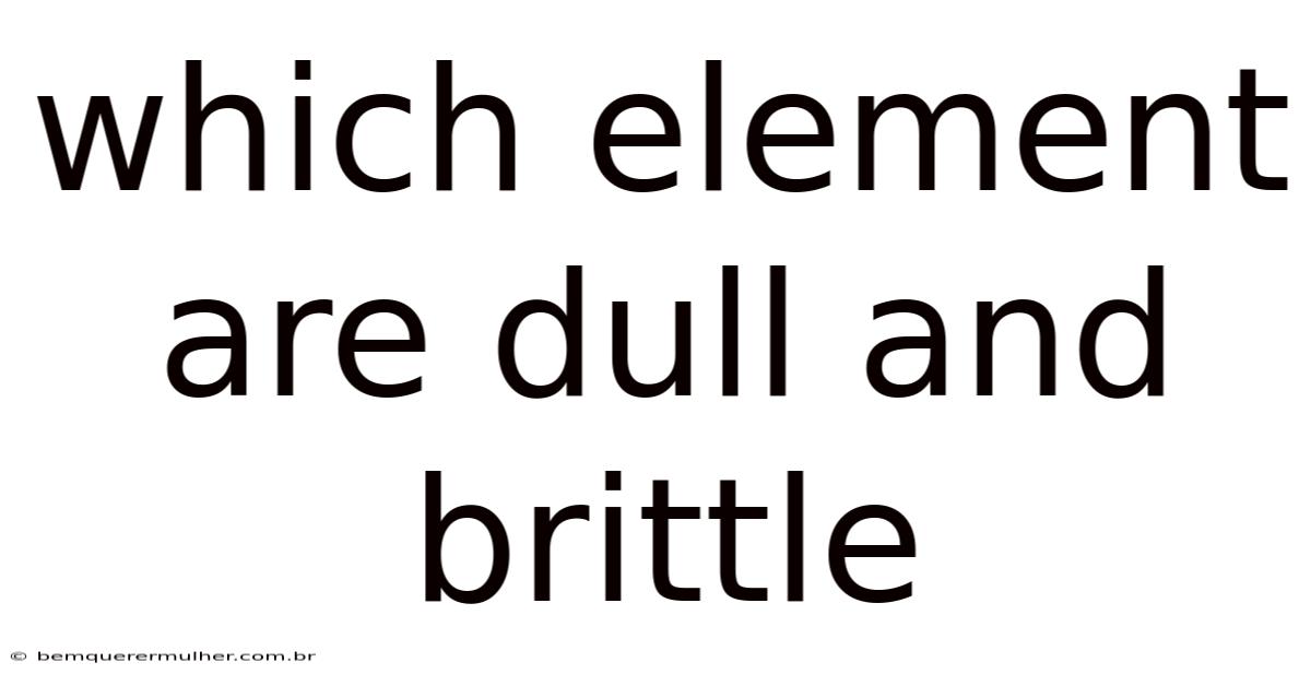 The Unyielding Truth: Which Elements Are Dull and Brittle?