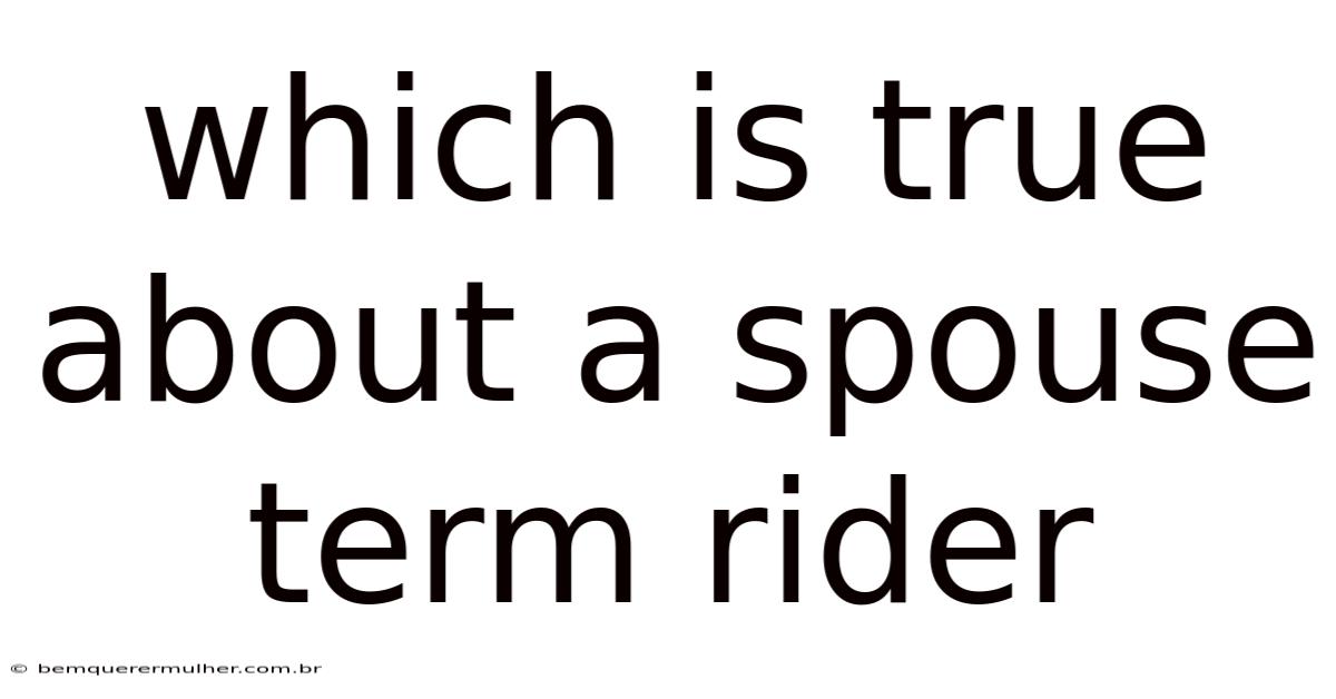 A spouse term rider offers a practical, affordable way to extend life‑insurance protection to a partner, but it is not a one‑size‑fits‑all solution. Understanding which is true about a spouse term rider—its structure, benefits, limitations, and common misconceptions—empowers individuals to make educated choices that safeguard their loved ones’ financial future. Which means whether you are adding the rider to a new policy or attaching it to an existing one, the key is to align the coverage amount, term length, and premium cost with your family’s long‑term objectives. With careful planning, a spouse term rider can become a cornerstone of a comprehensive financial safety net It's one of those things that adds up. But it adds up..
