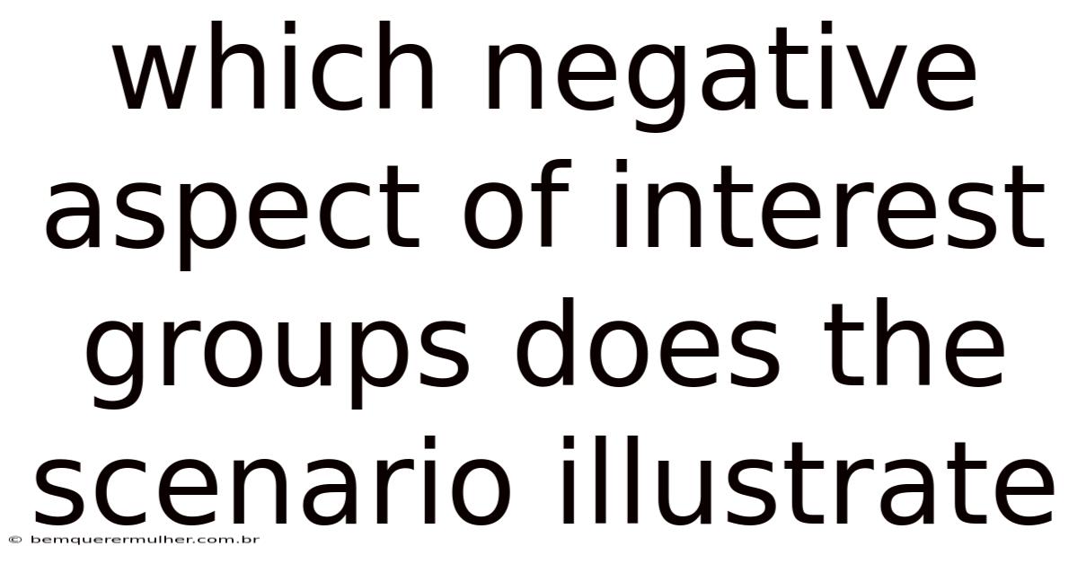 The scenario of a corporate lobby influencing environmental policy illustrates several negative aspects of interest groups, including undue influence, corruption, inequality, lack of transparency, and erosion of public trust. While