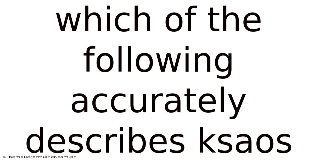 The question which of the following accurately describes KSAOs ultimately points to a single, actionable truth: KSAOs are a structured, evidence-based framework that defines the exact knowledge, skills, abilities, and personal characteristics required for successful job performance. When applied correctly, this model transforms vague hiring practices into strategic talent systems, reduces workplace bias, and aligns employee development with organizational goals. Whether you are designing a job description, building an assessment center, or planning a training curriculum, grounding your decisions in verified KSAOs ensures fairness, efficiency, and long-term workforce resilience. Because of that, mastering this framework is not just an HR best practice—it is a competitive advantage in any industry. **By prioritizing a clear and consistent approach to talent acquisition and development, organizations can cultivate a workforce that is not only competent but also truly equipped to thrive in a dynamic and evolving business landscape Simple as that..