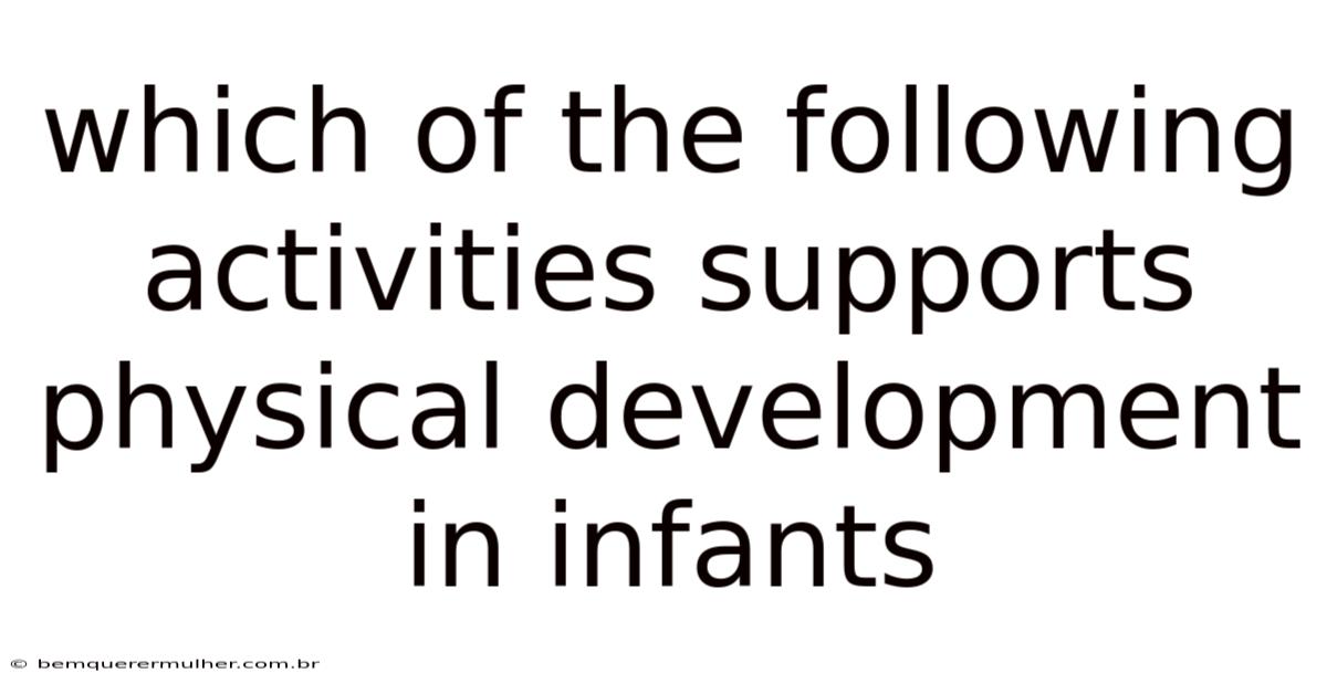 Whichof the following activities supports physical development in infants? Understanding the answer helps parents, caregivers, and educators create environments that nurture motor skills, strength, coordination, and overall health from the earliest months of life.