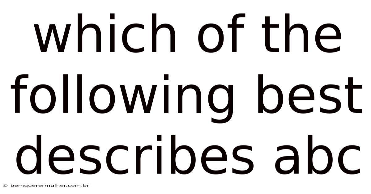 The question "which of the following best describes ABC" ultimately points to the fundamental principles or building blocks of any subject or concept. Whether we're talking about the alphabet for beginning readers, the ABC model in psychology, or the basic principles of any field, understanding these essentials is crucial for growth and mastery.