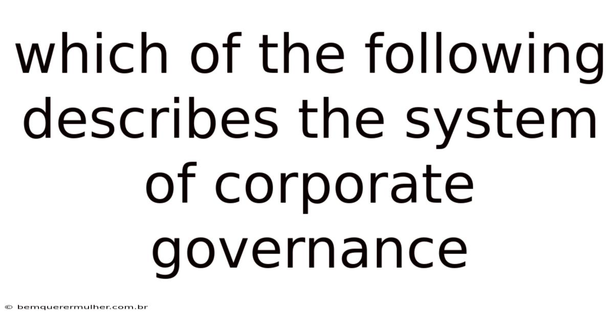 The systemof corporate governance refers to the framework of rules, practices, and processes by which a company is directed and controlled, and it is precisely the concept that the question which of the following describes the system of corporate governance seeks to pinpoint. This opening paragraph serves as both an introduction and a meta description, embedding the primary keyword while promising a clear, comprehensive answer that will guide readers through the essential elements, common characterizations, and practical implications of corporate governance systems Worth keeping that in mind..