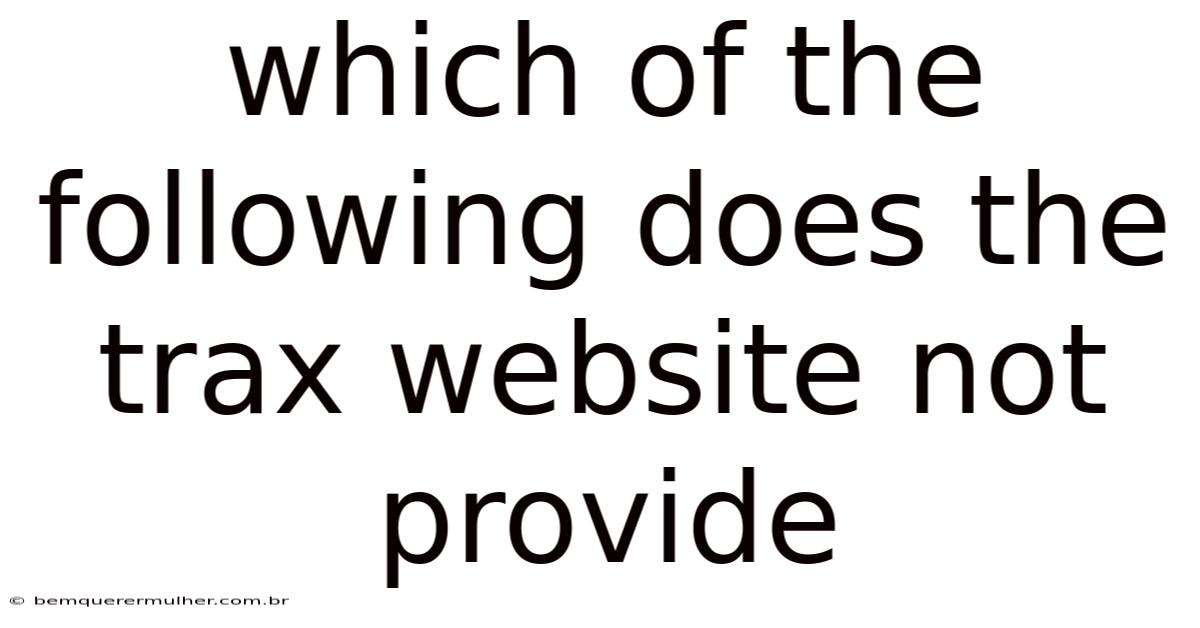 Which of the following does the trax website not provide? The central query—which of the following does the trax website not provide—can be answered by examining the platform’s functional gaps. Below is a structured breakdown of the most common omissions reported by users and industry analysts.