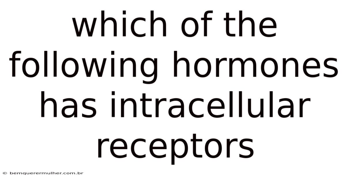 Boiling it down, when asking which of the following hormones has intracellular receptors, the answer is always those that are lipid-soluble. This includes all steroid hormones (cortisol, aldosterone, estrogen, progesterone, and testosterone) and thyroid hormones (T3 and T4) Still holds up..