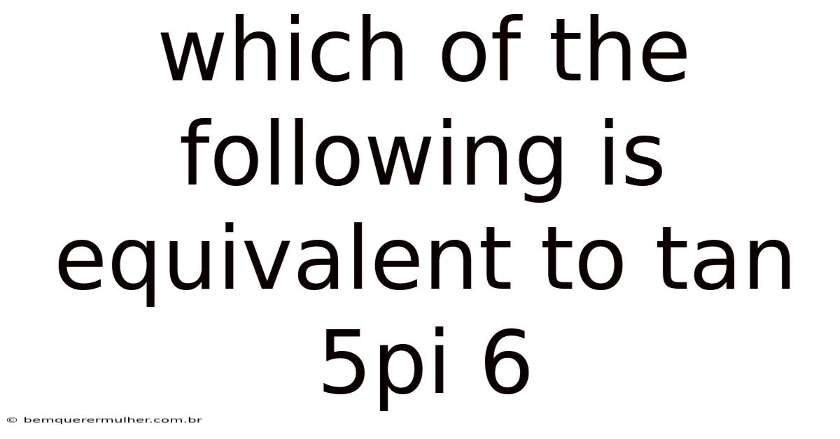 Understanding trigonometric values at special angles is a cornerstone of calculus, physics, and engineering. Now, one frequently encountered problem asks which expression is equivalent to (\tan\frac{5\pi}{6}). Now, while the question may appear simple, it opens the door to a rich set of concepts: reference angles, the unit circle, sign conventions across quadrants, and fundamental identities such as the tangent‑sum and co‑function formulas. This article walks you through every step needed to evaluate (\tan\frac{5\pi}{6}) correctly, explains why several seemingly plausible alternatives are actually incorrect, and provides a toolbox of strategies you can reuse for any angle expressed in radians.