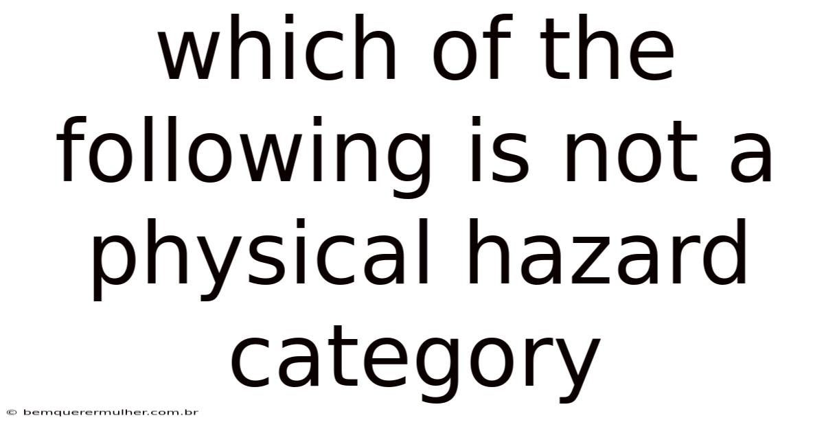 Understanding the different categories of hazards is essential for ensuring safety in various environments, whether it’s in the workplace, at home, or during outdoor activities. When we talk about identifying which category does not fit as a physical hazard, it’s important to clarify the distinctions between various types of risks. In this article, we will explore the concept of physical hazards and examine the options presented to determine which one stands apart from the rest Easy to understand, harder to ignore..