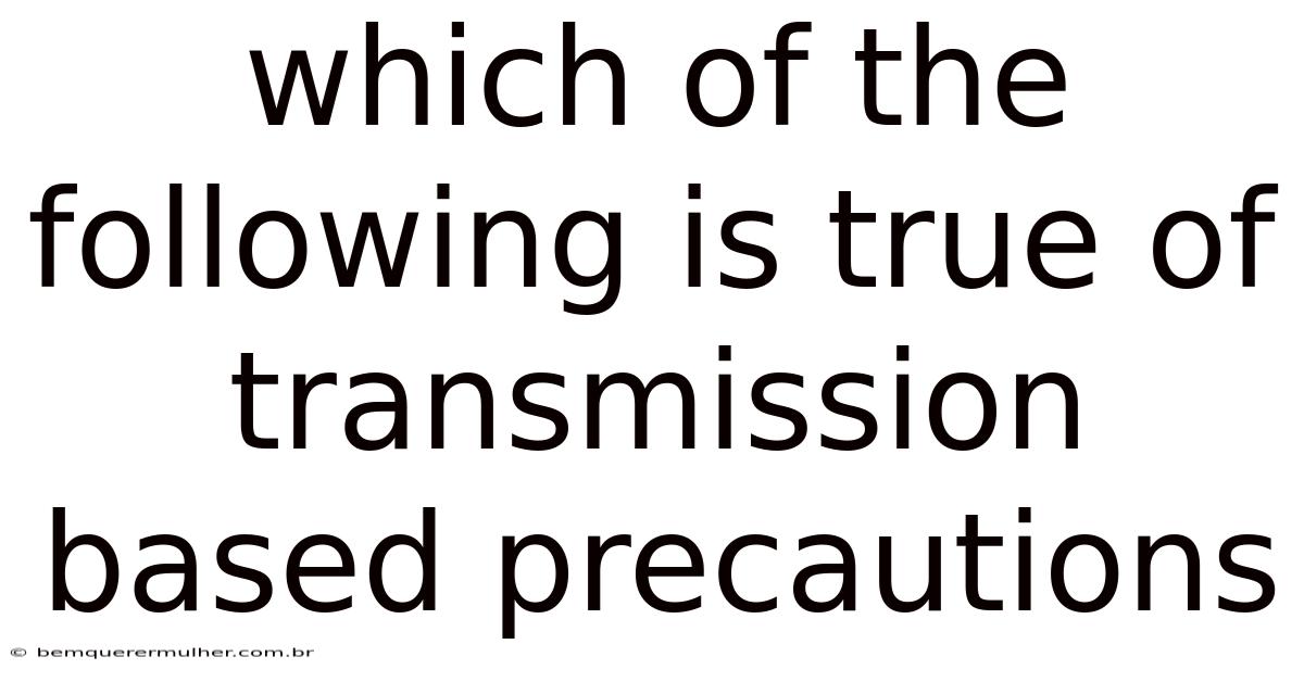 Transmission-based precautions are critical in healthcare settings to prevent the spread of infections. These precautions are employed when the mode of transmission poses a significant risk to patients and healthcare workers. Understanding which of the following is true of transmission-based precautions is essential for anyone involved in healthcare, from practitioners to administrators.
