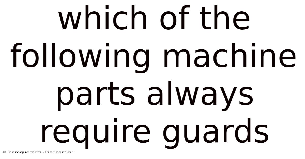 Below is a consolidated list of machine parts that, by regulation and best practice, must be guarded whenever the machine is in operation. These parts are classified by the type of hazard they present: