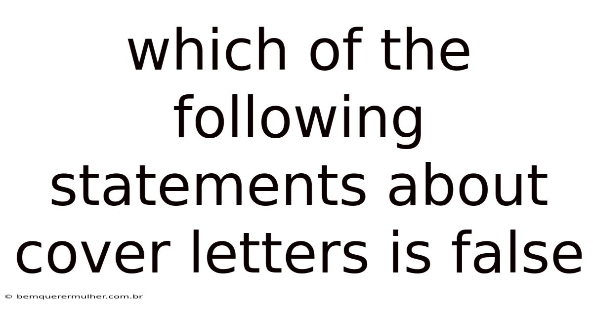 Understanding the truth behind cover letters is crucial for anyone aiming to stand out in the competitive job market. Consider this: when we look at the various elements that make a cover letter effective, one question often arises: which statement is false? Even so, this article will explore the key aspects of cover letters, clarify common misconceptions, and provide actionable insights to help you craft a compelling letter. By the end, you’ll have a clearer picture of what makes a cover letter successful and what to avoid Simple as that..