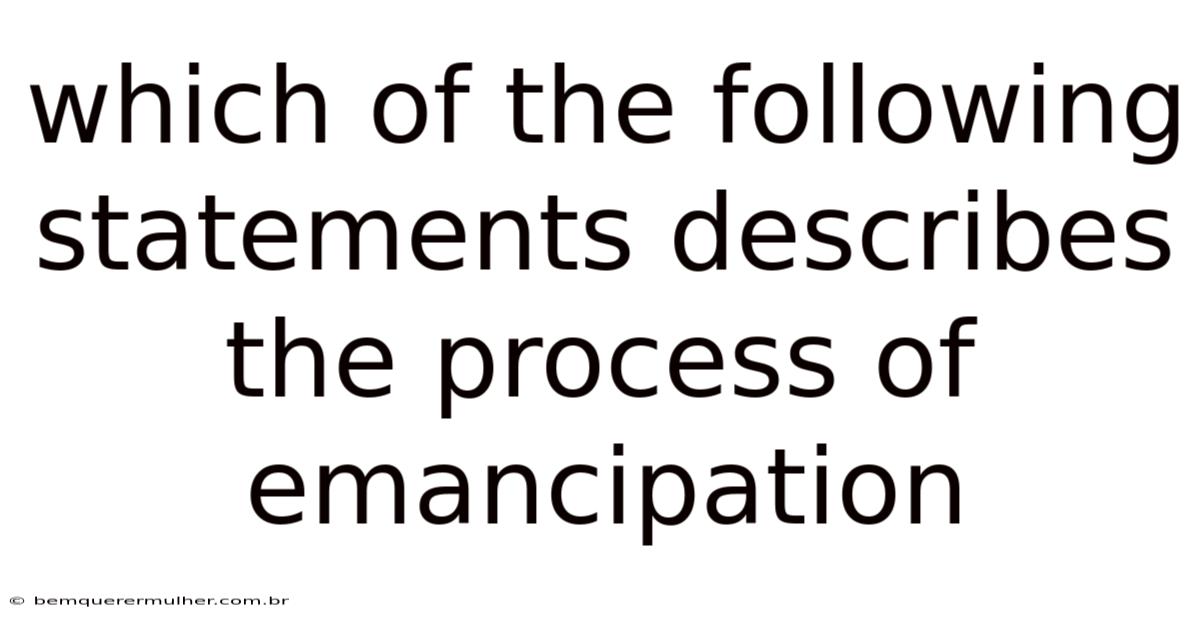 When exploring historical, legal, and social transformations, one question consistently emerges: which of the following statements describes the process of emancipation? At its core, the process of emancipation refers to the structured transition from a state of legal, social, or political restriction to one of recognized freedom, autonomy, and equal rights. But whether examining the abolition of slavery, the legal independence of minors, or broader civil rights movements, emancipation is never a single event but a deliberate, multi-layered progression that reshapes individuals and societies alike. Understanding this journey requires looking beyond simplified definitions and examining the legal frameworks, historical milestones, and human experiences that make true liberation possible Practical, not theoretical..